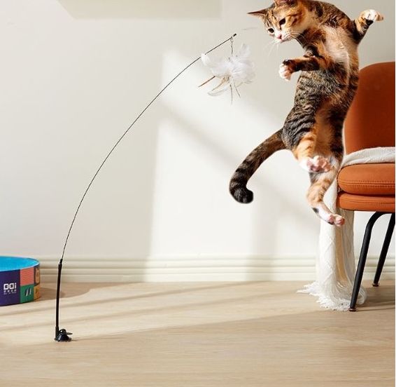Kedilerin genelde bayıldığı Vantuzlu Tüylü Zilli Kedi Oyun Oltası